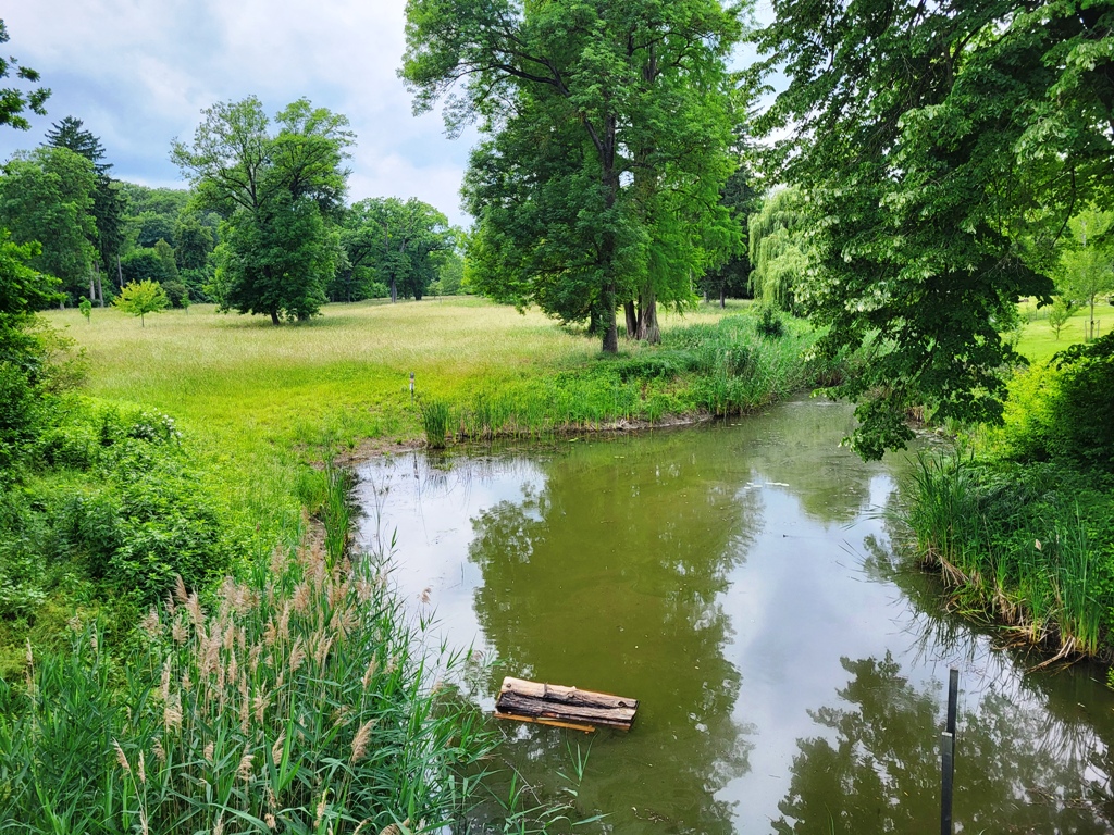 A szépen gondozott kastélypark színes virágokkal tarkított zöldellő növényzete ezúttal is ámulatba ejtett bennünket, majd őszi kirándulásunkhoz hasonlóan, az apró tavacska hídján átkelve megindultunk a túraösvényen, megcélozva a Duna-partot. Kora délután az addigi napsütést felhősödés váltotta, amire fel is figyeltünk, ennek ellenére lendületesen szedegettük lábunkat a csodálatos természeti környezetben.
