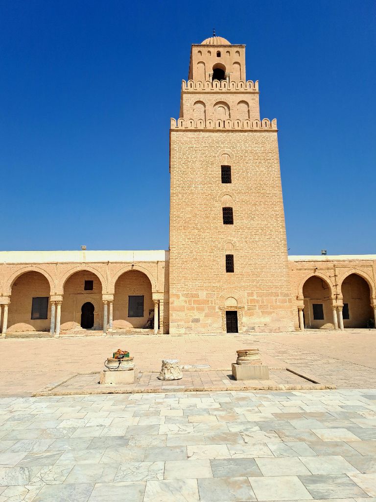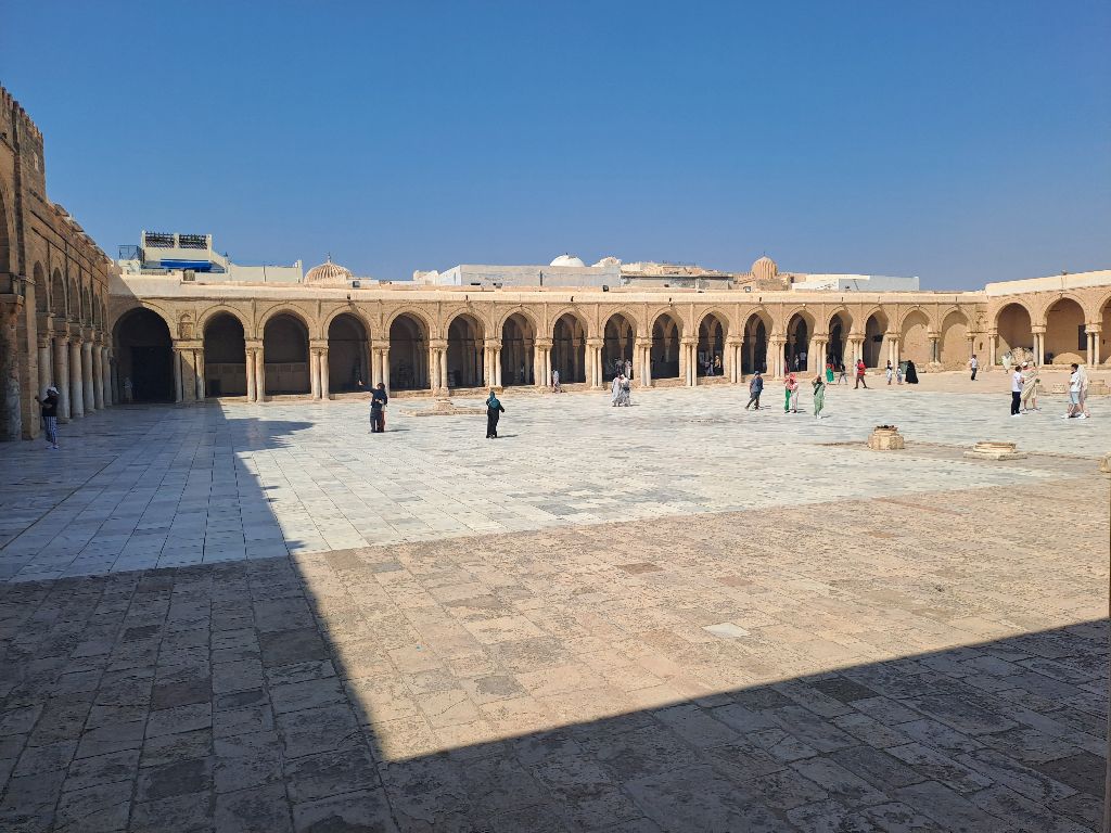 Kairouanba minibusszal érkeztünk, Sousseból. Leszálláskor rögtön a Ribat falait pillantottuk meg, a falak mentén egyenes út vezetett a Nagymecsetbe (avenue El Moiz Ibn Badisra). A mecsetbe muszlimoknak ingyenes a belépő, nem muszlimoknak 12.000 TND.